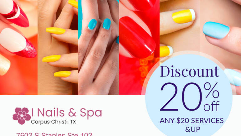 20% off nail coupon at I Nails Spa Corpus Christi 2024